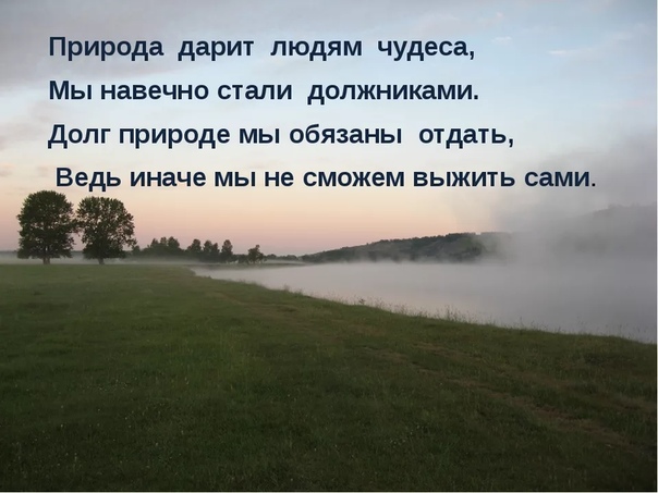 Для иных природа — это дрова, уголь, руда, или дача, или просто пейзаж. Для меня природа — это среда, из которой, как цветы, выросли все наши человеческие таланты.