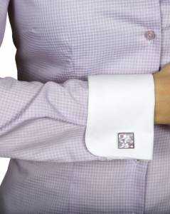 Женская рубашка с запонками отличается от типовых моделей особым исполнением удлиненных манжет, которые называют французскими. На них отсутствуют пуговицы, зато имеются две прорези для закрепления застежек. В женской моде допускаются рубашки с французскими манжетами обычной длины рукавов и на 3/4.
