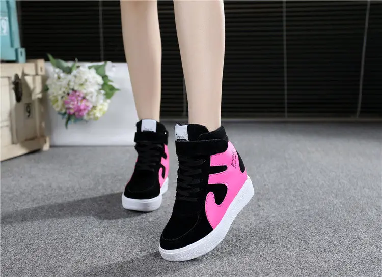 Если перед вами высоко обрезанные сникерсы, к ним применимы правила комбинирования, которые известны для ботильонов на танкетке. Неплохо гармонируют с такими сникерсами юбки-мини, можно выбрать обувь, украшенную стразами или кружевными вставками.