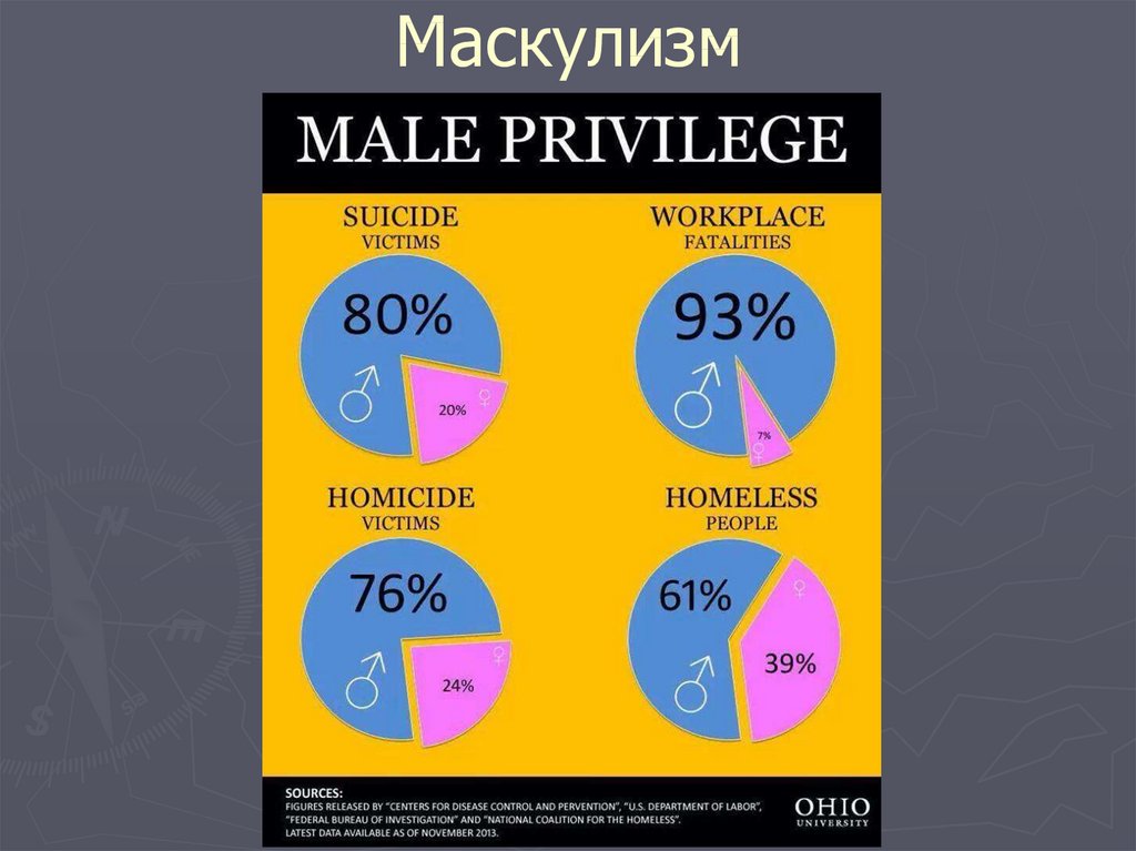 Маскулизм – идеология, основанная на принципе равенства (в том числе юридического) мужчин и женщин.