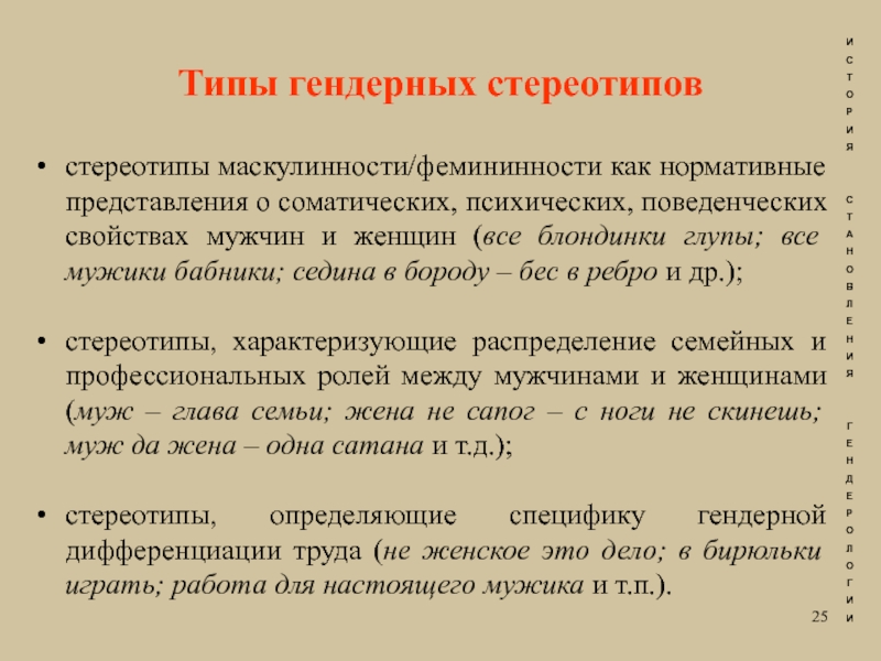 Важно отметить, что большинство развитых обществ переживают кризис феминности и маскулинности, поскольку стереотипные представления о женственности и мужественности не соответствуют вызовам современности. Ярким примером указанных тенденций может послужить концепция «токсичной маскулинности».