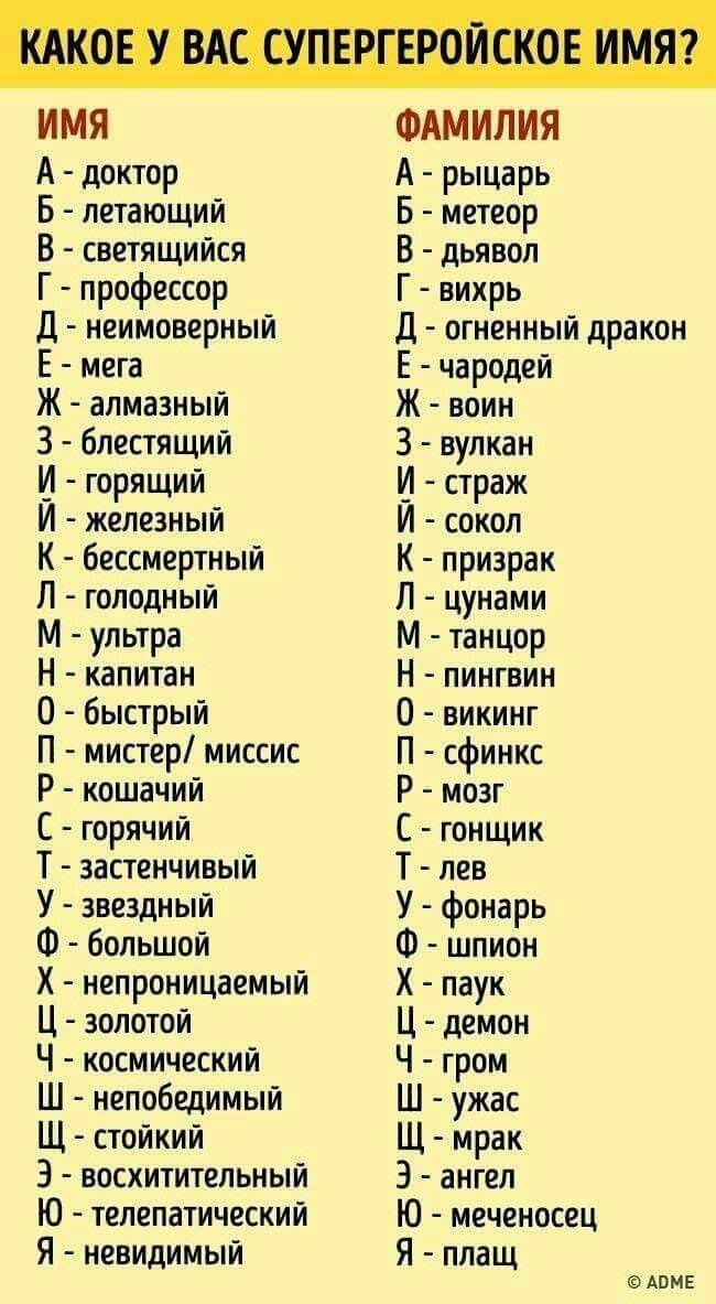 Любителям кино и книг этот сегмент псевдонимов (на который повлияли книги и персонажи фильмов) доставит удовольствие.