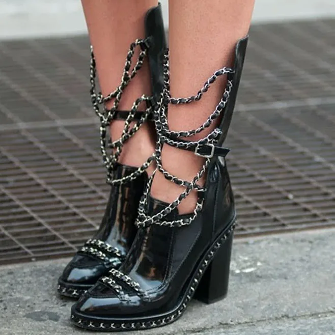 Обувь выглядит эффектно и роскошно. Стильные женские ботинки из лакированной кожи лучше оставить для особых случаев и обувать по торжественному случаю. Для повседневной носки такая обувь не подойдет, поскольку быстро потеряет привлекательный внешний вид под влиянием неблагоприятных условий;