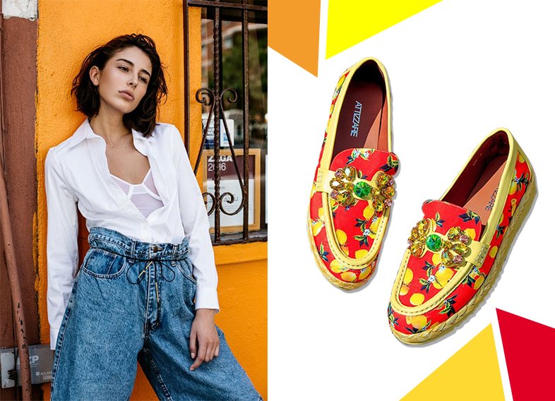 Распущенные волосы будут хорошо смотреться, если в качестве обуви выбраны мокасины женские. Фото демонстрируют такой вариант.