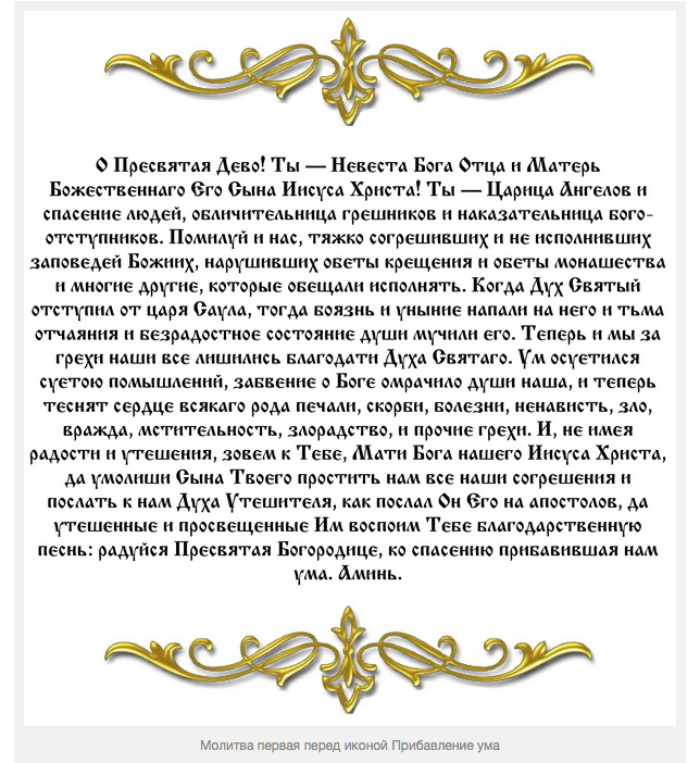 «Богородице Дева, радуйся, Благодатная Мария, Господь с Тобою; благословенна Ты между женщинами и благословен плод, рожденный Тобою, потому что Ты родила Спасителя Душ наших».