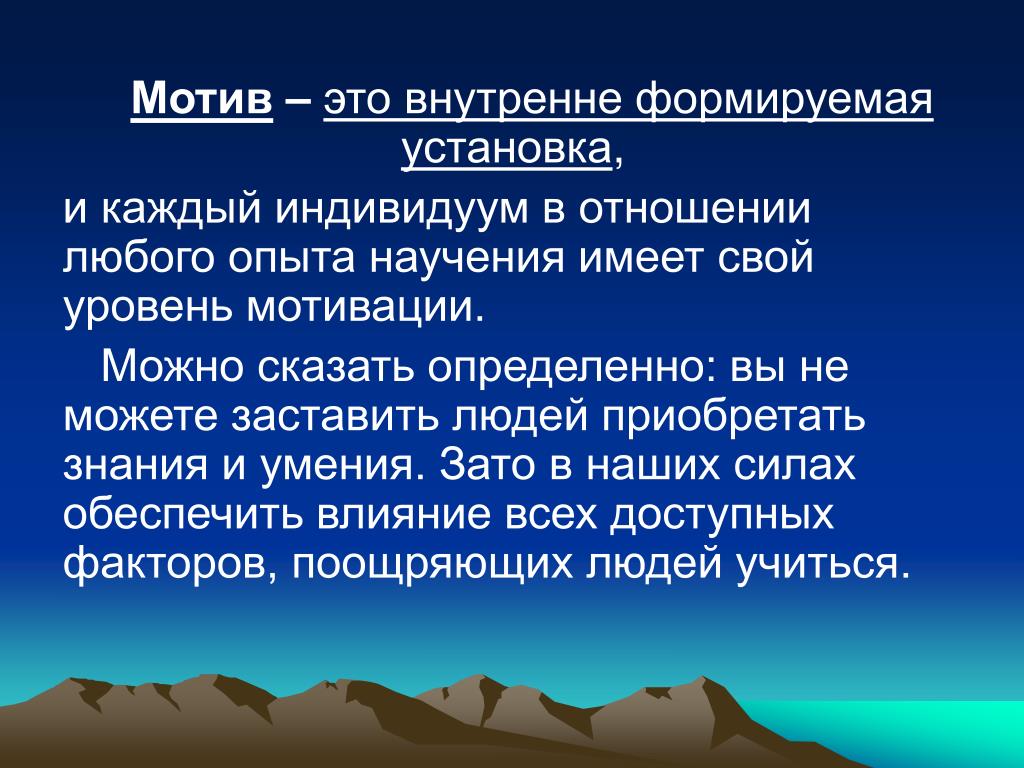 - Мотивацию можно определить как готовность работать, затрачивая энергию для достижения цели или вознаграждения – Дейл С.