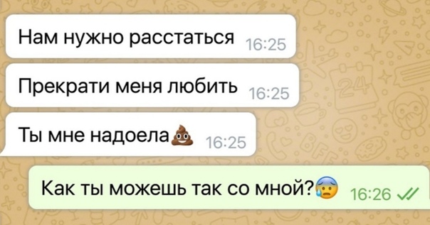Он прочитал мой текст из-за синей галочки в WhatsApp. Конечно, он не ответит. Я не жду, что он ответит, но мне нужно, чтобы он знал, что флирт с А, когда он был со мной, морально недопустим.