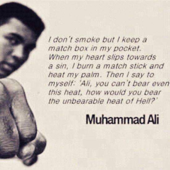 Али, этому человеку было больно. На кону для него в каждом бою было все. Он упорствовал, он двигался и боролся со своим сердцем. Он делал высокие заявления и прыгал выше, чем они. Назовите самого большого и подлого, с которым он дрался со всеми. Непревзойденный победитель, верный обоим своим именам, стойкий и доблестный Мухаммед Али!