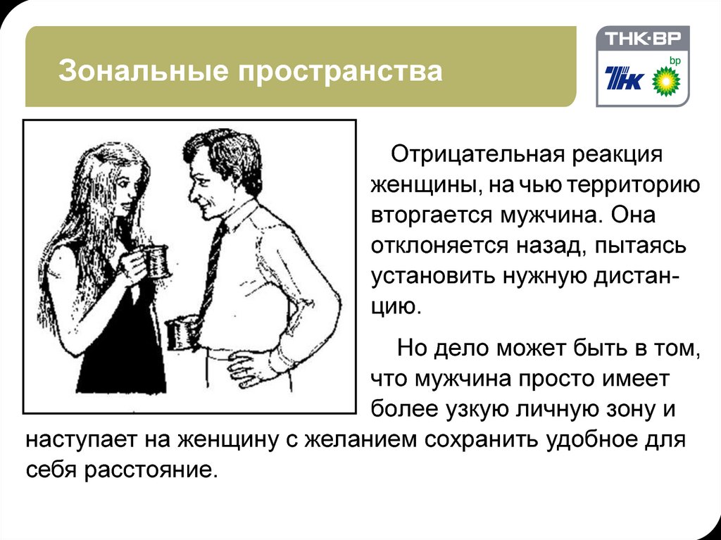 Цель. Данный прием подробно описан в любом пособии по НЛП и заключается в том, что женщина нарушает твою так называемую «ближнюю», или «интимную», зону. Это примерно полметра вокруг тебя. В нее допускаются только самые близкие люди, и если кто-либо в ней оказывается, подсознание определяет его либо как жестко «чужого», которого срочно нужно удалить на безопасное расстояние, либо как откровенно «своего», которому можно доверять и доверяться.
