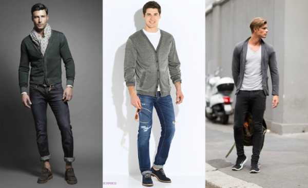 Тем, у кого фигура далека от стандартов Апполона, лучше вместо жакета выбрать мужской кардиган. Он немного размывает линию верха, поэтому не будет заострять внимание на не слишком развитой мускулатуре и не очень широких плечах. Длина кардигана позволяет коррелировать ширину бёдер. Кардиган смотрится по-взрослому, поэтому его смело носят мужчины старше 40 лет. Обычно узкие брюки предпочитают молодые люди до 35 лет, но при гармоничном верхе они подходят в любом возрасте.