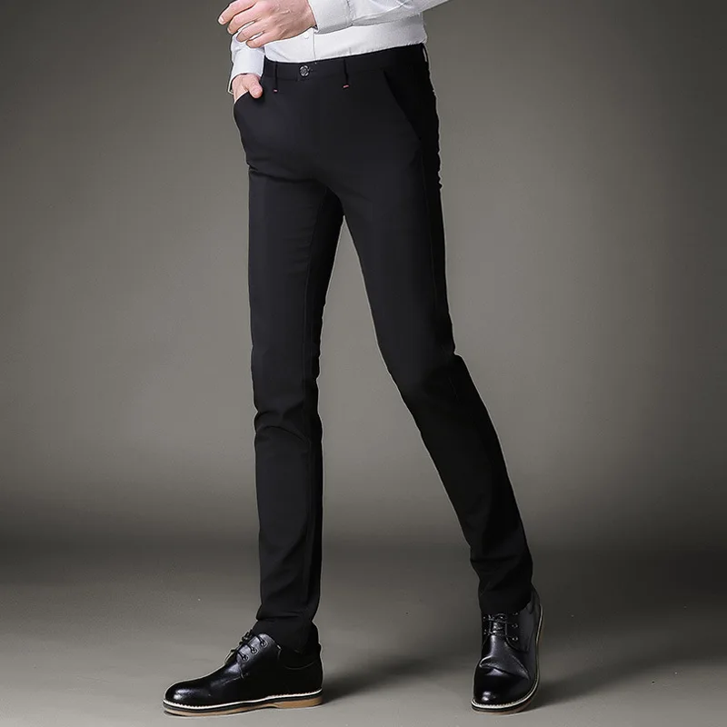 Сегодня зауженные классические брюки мужские изготавливают из тканей на основе льна, хлопка, шерсти, синтетических волокон. Кроме того, используется вельвет, велюр, бархат и кожа. В холодное время года идеально подойдут брюки из твида.