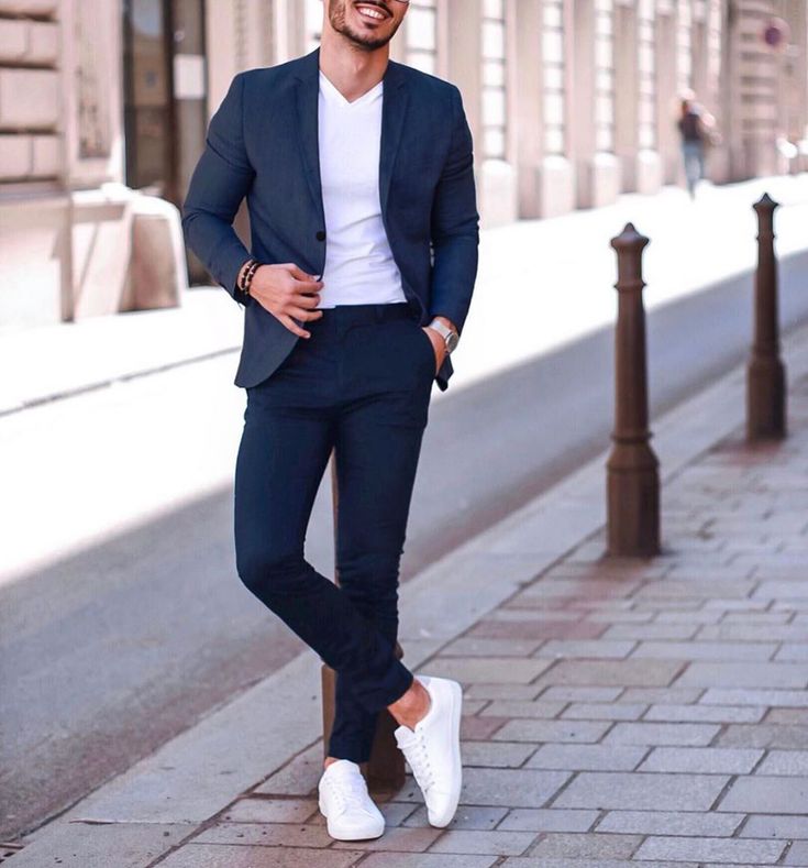 Приталенный крой спортивных пиджаков и блейзеров обязывает правильно выбирать брюки. К таким пиджакам подойдут только модели с зауженными штанинами.