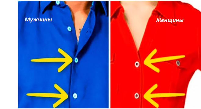 Разницу в расположении пуговиц на мужской и женской рубашках видно на картинке ниже.