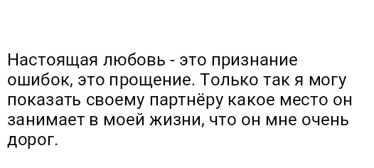 Я считаю, что по-настоящему любишь человека тогда, когда понимаешь, что самое главное — это счастье объекта любви. В настоящей любви человек «задвигает» свои чувства и старается сделать все, от чего зависит счастье возлюбленного. Любовь никогда не заключается в эгоизме, эгоцентризме.