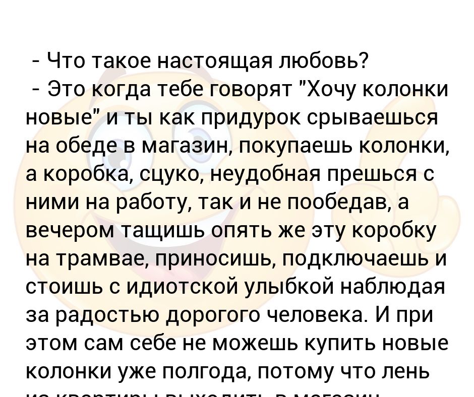 Что такое настоящая любовь? Это непростой вопрос. Любовь — это чувство крепкой привязанности к человеку, если верить толковому словарю. Привязанность возникает тогда, когда долго общаешься с человеком, а это общение подкрепляется удовлетворением какой-то потребности либо просто положительной эмоцией. Тогда и возникает эта привязанность, про которую идет речь в определении.