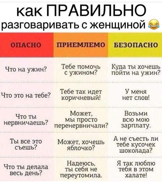 Никогда в жизни не позволяйте себе сравнивать жену со своей мамой.