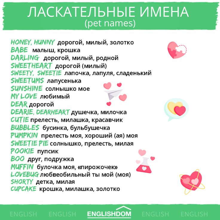 Если и вы, и ваш партнер открыты к глупостям, которые сопровождают это, использование ласкательных имен друг для друга может сделать вашу связь еще сильнее. При этом важно помнить, что не всем они понравятся. «Помните, имена домашних животных, как и связь, могут означать разные вещи для разных людей в отношениях», — говорит Трэнс. «Значение, которое мы придаем этим именам, имеет значение. То, что может нравиться одному человеку, может быть отталкивающим для другого. Важно настроиться на своего партнера (партнеров), чтобы действительно знать, улучшит ли имя питомца связь между вами».