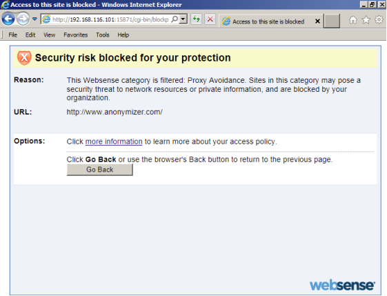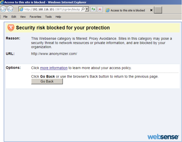 Поскольку наше соединение исходит от известного выходного узла Tor, нас встретит страница, информирующая нас о ситуации.