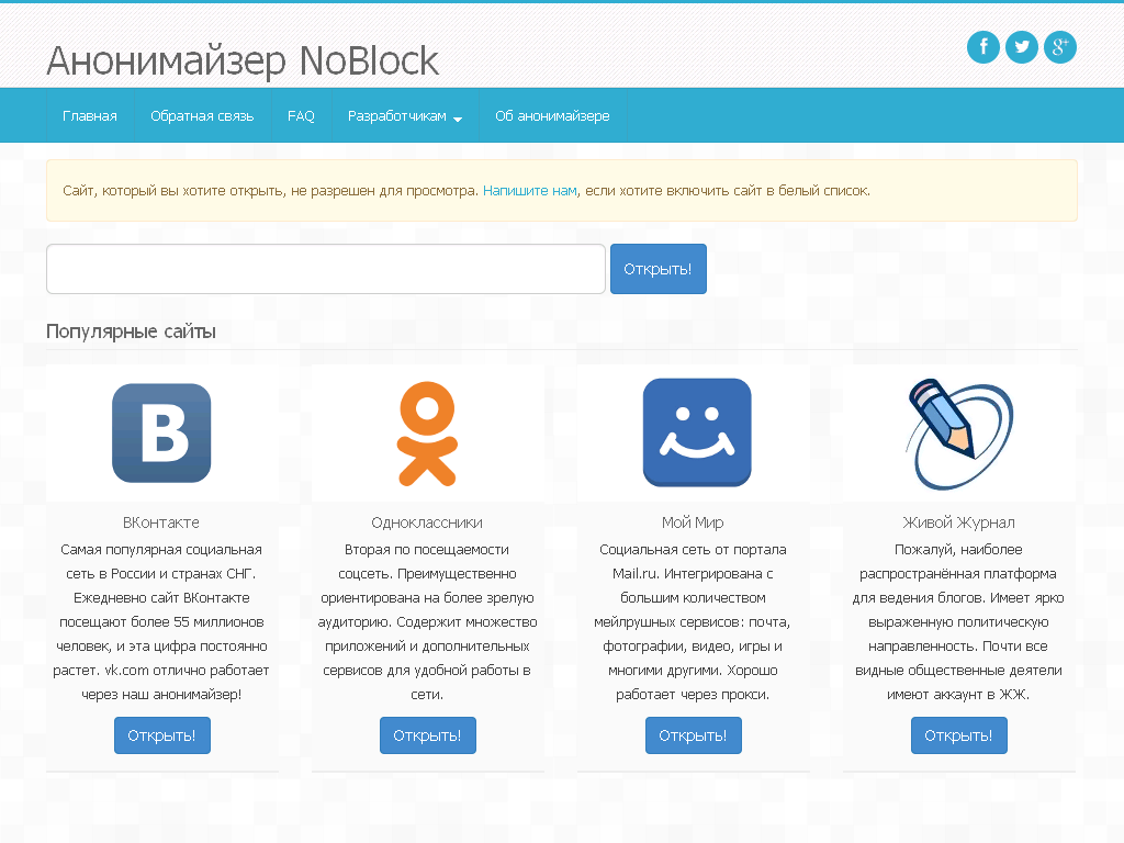 Noblockme ru бесплатный анонимайзер для вконтакте и одноклассники: Анонимайзер хамелеон. открой любой заблокированный сайт в том числе вконтакте и одноклассники