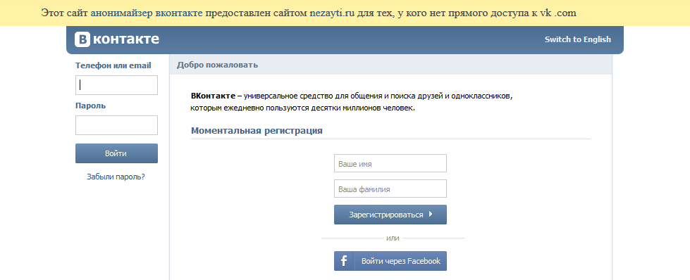 Как использовать байпасы? Очень простой. Заходим на любое из этих зеркал-сайтов и вводим свои данные так же, как и на сайте Вконтакте.ру.