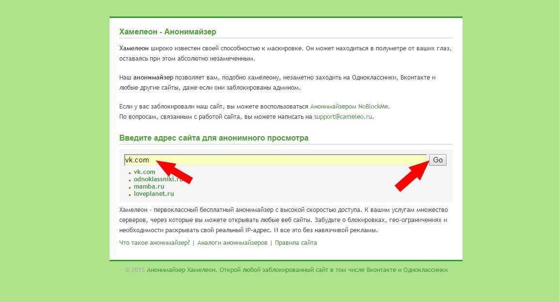 В первую очередь объясним, как войти в Контакт через анонимайзер Хамелеон бесплатно: на наш взгляд, это самая востребованная услуга среди русскоязычных пользователей интернета.