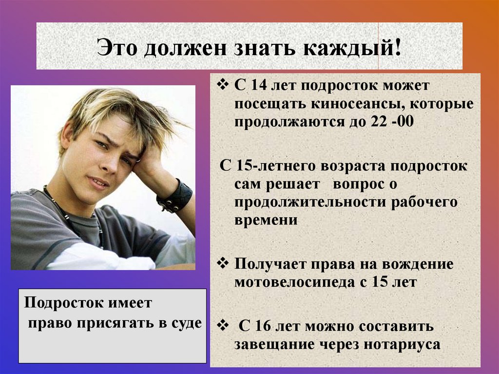 Сейчас он уже имеет много прав и обязанностей. Его не сильно контролируют, он умеет принимать решения. Появляется чувство ответственности, что хорошо готовит тинэйджера к взрослой жизни.