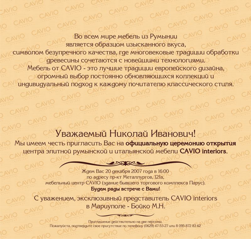 - Нам очень приятно сообщить, что мы открываем наш салон в вашем городе! Пожалуйста, будьте с друзьями и семьей [дата] в [место]. Мы очень рады познакомиться с вами!
