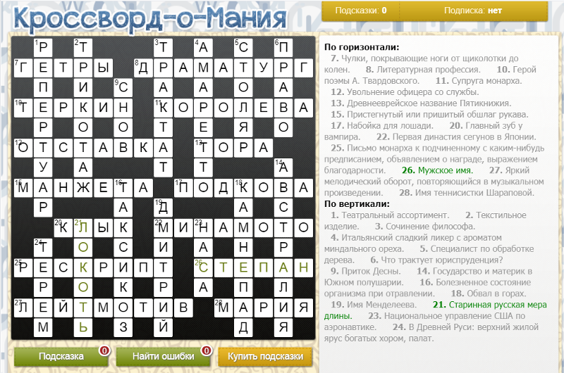 - Исправить кроссворд