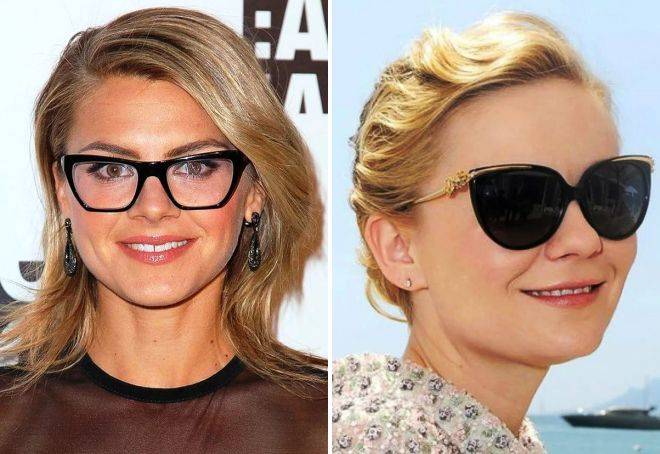 Помните, что чем уже очки, тем шире будет выглядеть лицо. Такие модели противопоказаны обладательницам круглой формы лица и «ромб».