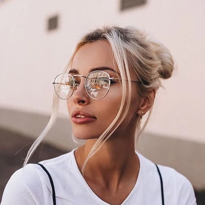 Изящные очки со стёклами среднего размера и с лаконичной металлической или пластиковой лёгкой оправой занимают лидирующее место в рейтинге трендовых в 2020–2021-м. За счёт такой полупрозрачности очки кажутся незаметными, но с их помощью можно выгодно подправить форму своего лица. Например, практически любому овалу подойдёт классика и рэй-бан.