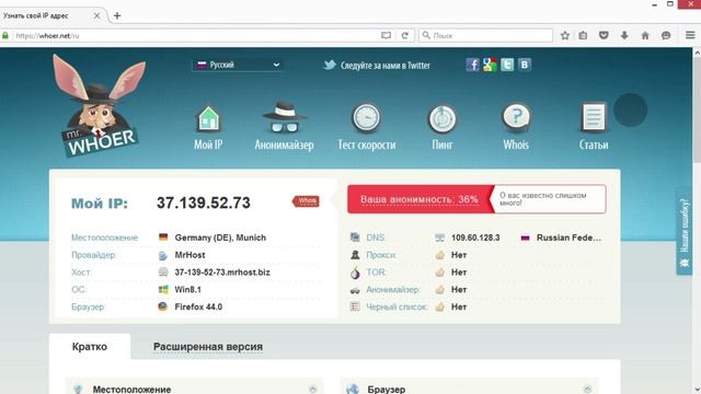 Теперь зайдем на какой нибудь сайт проверки IP и еще раз проверим новый IP адрес. Как вы видите все прекрасно работает.