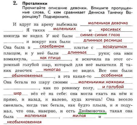 Тут перечисляем все характеристики внешности людей и свойства предметов, изображенных на картинке.