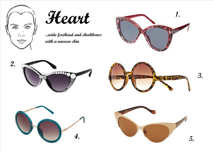 Для первого вида треугольного лица необходимо зрительно уменьшить верхнюю и среднюю части лица, а также сгладить «острый» подбородок. Для таких людей идеально подходит овальная или округлая форма очков, противопоказаны очки типа «бабочка».