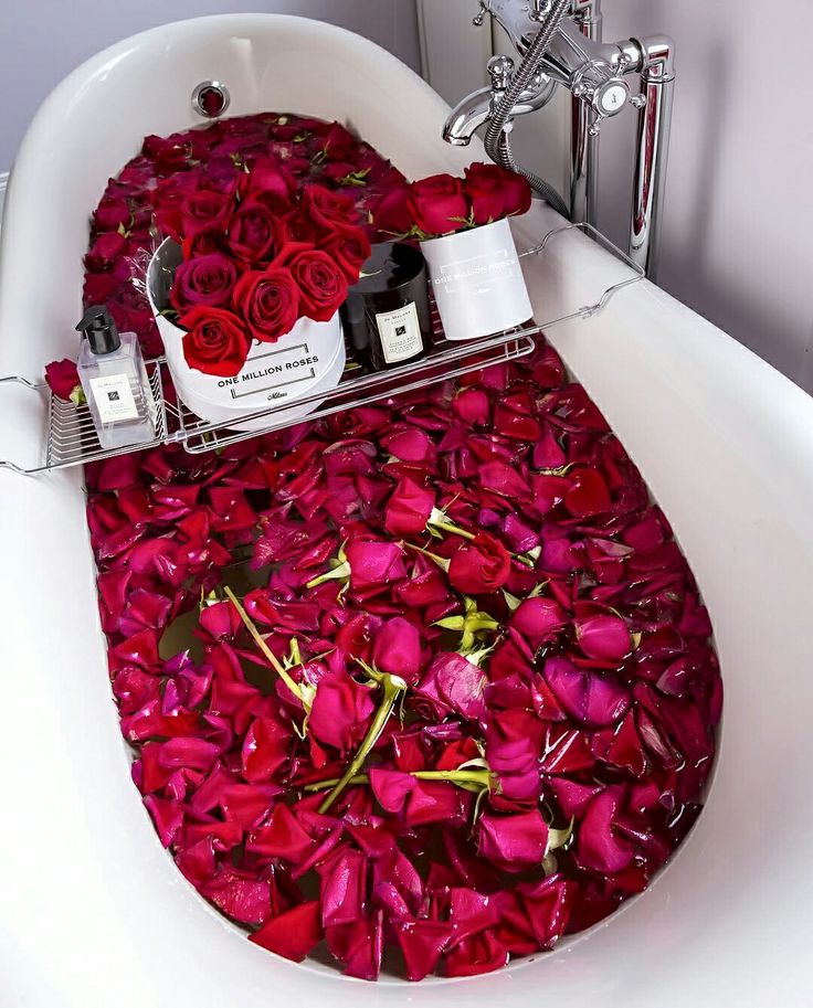 Поздравление начинается с поднесения букета, которое можно сопроводить стихотворением, посвященным девушке. Поверьте, даже не самые складно рифмованные строки очень воздействуют на женское подсознание. Многим кажется очень аристократичной манера обрывать розовые лепестки и усыпать ими постель или пенную воду в ванной. Для девушки подобная практика приносит множество дискомфортных ощущений – она и так чистая, ухоженная, долго красилась не для того, чтобы залазить в ванну и портить макияж.