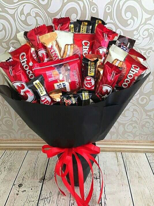 Букет из конфет будет тем самым необычным и желаемым подарком, который приведет в полный восторг любую женщину. И даже если дама не ест сладости, такой презент однозначно поднимет ей настроение и доставит удовольствие.