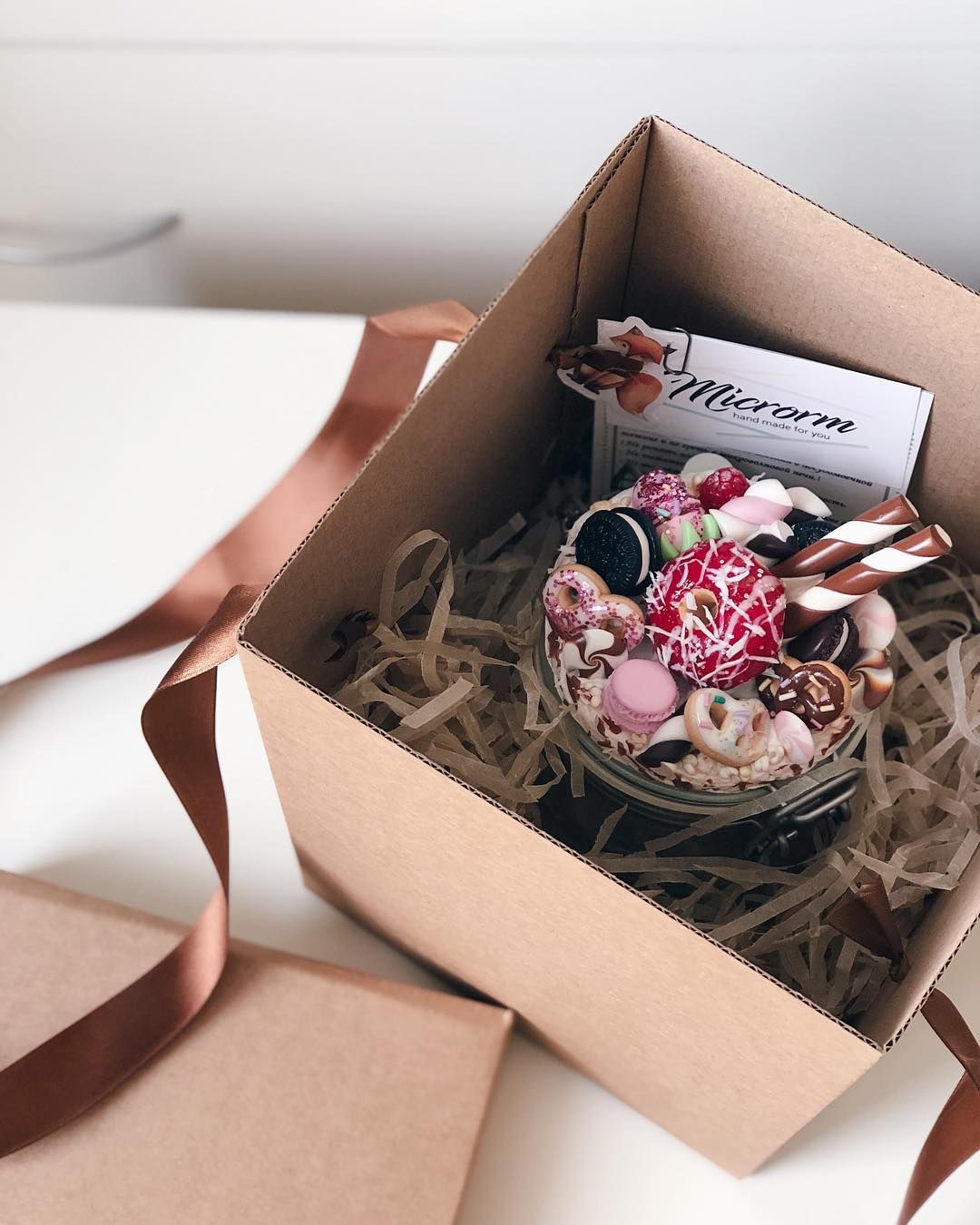 Какие можно сделать подарки для девушек? Необычные, конечно же. Второе место среди любимых презентов занимают сладости. Здесь можно скреативить по-разному: оригинальные торты, букеты из конфет или другие поделки, кексы, различные пирожные и многое другое.