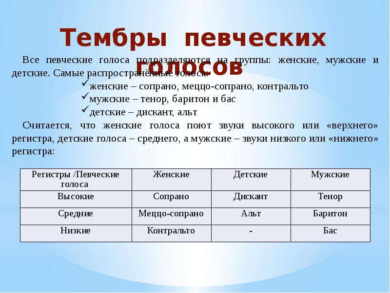 Голос — это звук, который получается под давлением выдыхаемого воздуха при колебании в гортани приближенных друг к другу напряженных голосовых связок. Главные качества любого голоса — это сила, высота, тембр. Для хорошо поставленного голоса характерны еще и такие свойства, как благозвучность, полетность, подвижность и разнообразие тона.