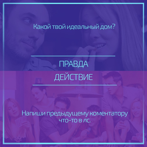Чтобы играть в «Правду или действие», вам нужно как минимум два человека. Однако это один из тех случаев, когда «чем больше, тем веселее», и игра с группой людей может превратиться в абсолютно веселую и увлекательную игру. Вы и другие люди, которые играют, должны сидеть в кругу, чтобы все могли видеть всех остальных игроков. Затем выберите кого-нибудь, чтобы начать. Этот человек — Мастер. Мастер должен выбрать кого-нибудь в группе и спросить их, предпочитают ли они правду или вызов.Как только этот человек выберет один из двух вариантов, Мастер должен либо задать ему пикантный вопрос правды, либо дать ему уникальный вызов. Человек должен соответственно ответить на вопрос или выполнить вызов. Если они не хотят отвечать или не могут выполнить вызов, они выбывают из раунда.