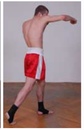В этой стойке ведущее плечо используется для отражения мощных задних рук противника, а задняя рука — для парирования ударов ведущей руки.