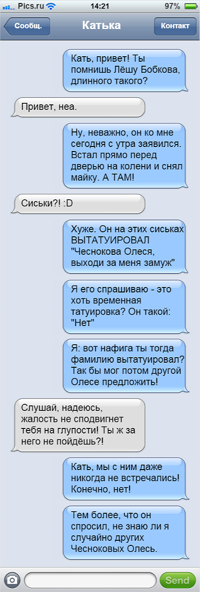 Немногословен от волненья, Сегодня вам решусь сказать — Скорей примите предложенье Моею девушкою стать.