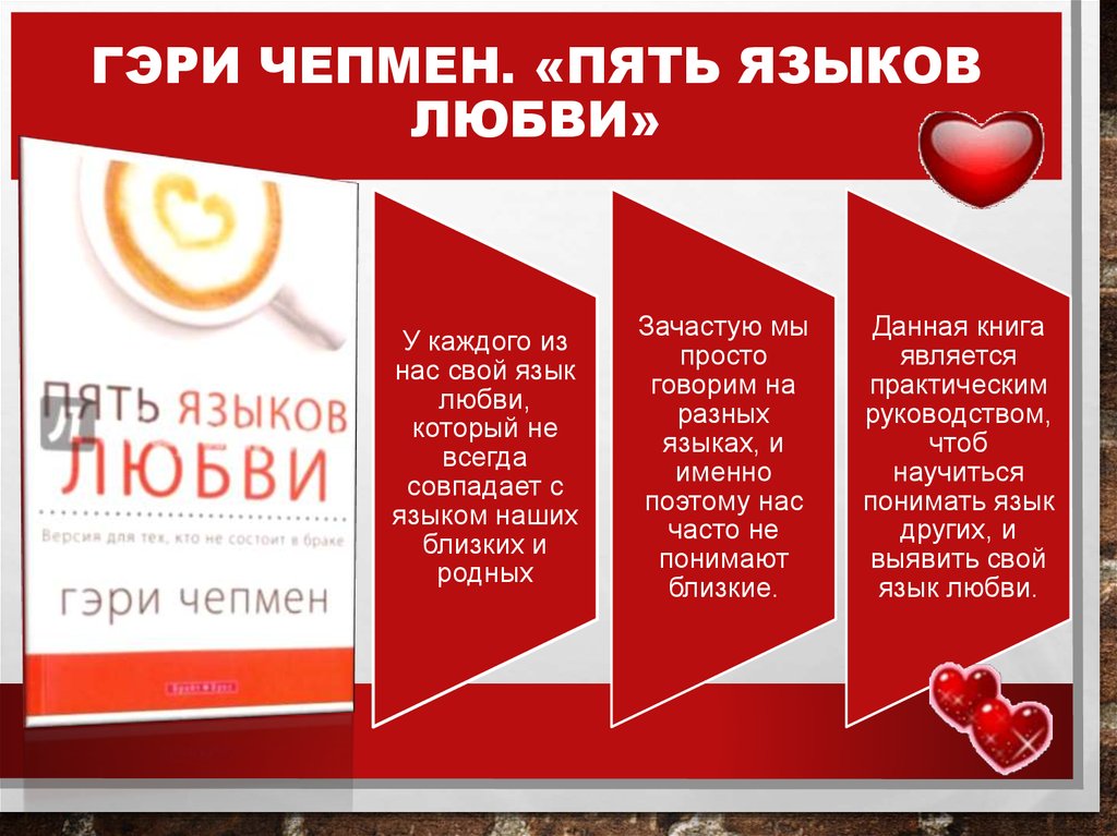 Вот краткое описание каждого из пяти языков любви, которые описывает Чепмен.