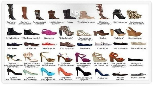 - Все виды обуви, список с фото: мужская и женская обувь от А до Я