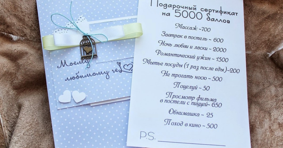 Любовные записки или открытки показывают партнеру, что вы потратили время и проявили фантазию, сочинив необычный текст. Чтобы ей было особенно приятно, оставьте открытку в таком месте, куда она обязательно заглянет, но не будет ожидать подобного сюрприза. Если готовы потратиться, можете сделать открытку на заказ специально для нее.