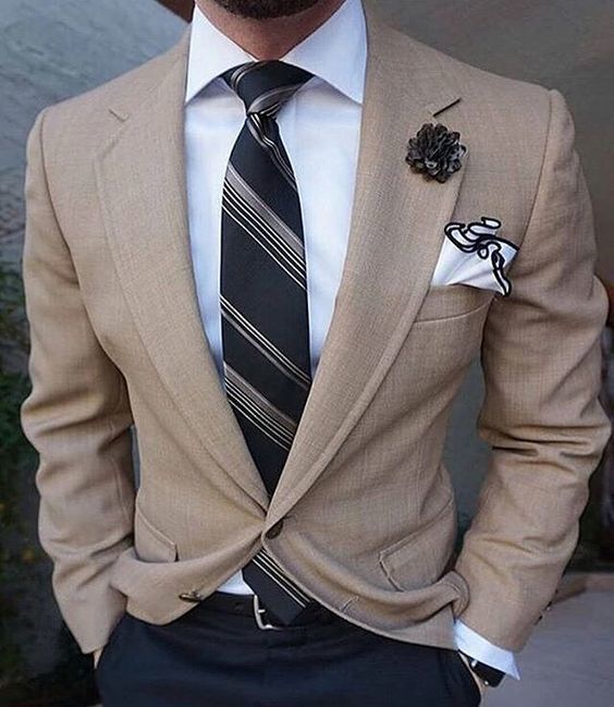Точно так же вы можете выбрать нагрудный платок на тон светлее или темнее основного цвета вашего ансамбля. Помните, что все дело в деталях, поэтому не бойтесь выделять акцентным цветом рубашку в тонкую полоску или клетку.