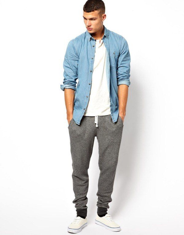 Рубашка и спортивные штаны: Носите рубашки со спортивными штанами