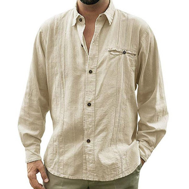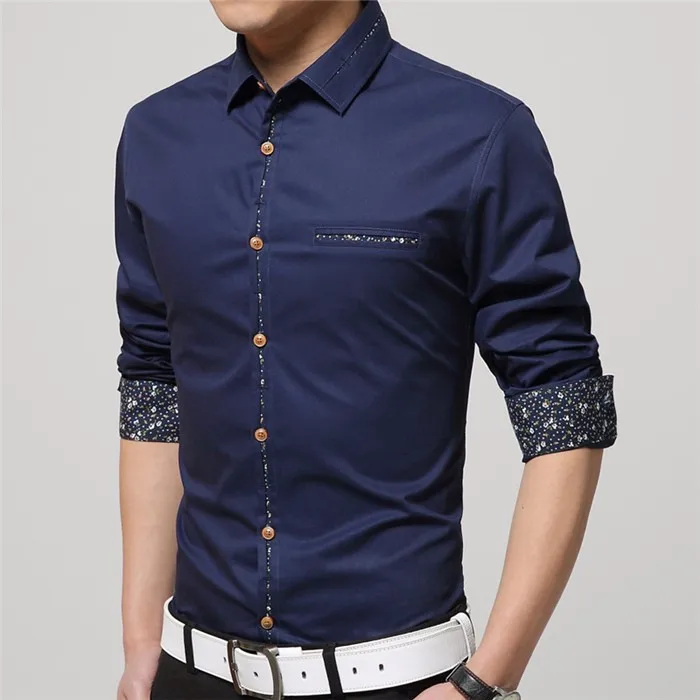 Классическая мужская рубашка прямого кроя. Классический воротник, нагрудный карман слева, планка на семь пуговиц в тон, манжеты на 1 пуговице.