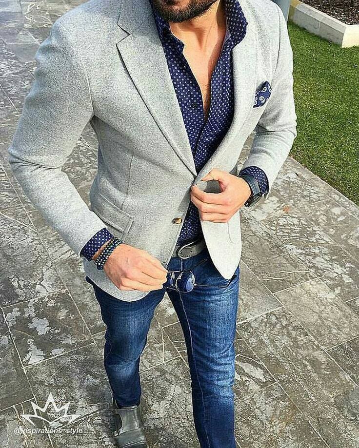 - Лучше всего с однотонными пиджаками сочетаются рубашки в клетку и полоску.