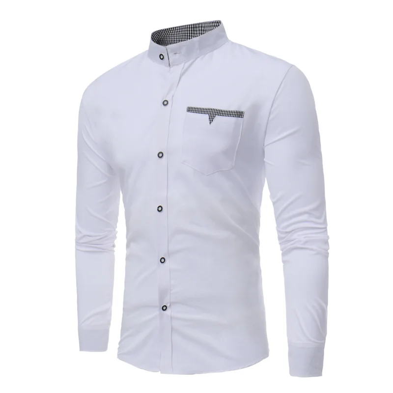 Новые модные повседневные мужские рубашки с длинным рукавом воротник-стойка приталенная рубашка мужская корейская деловая мужская рубашка мужская одежда m-5xl