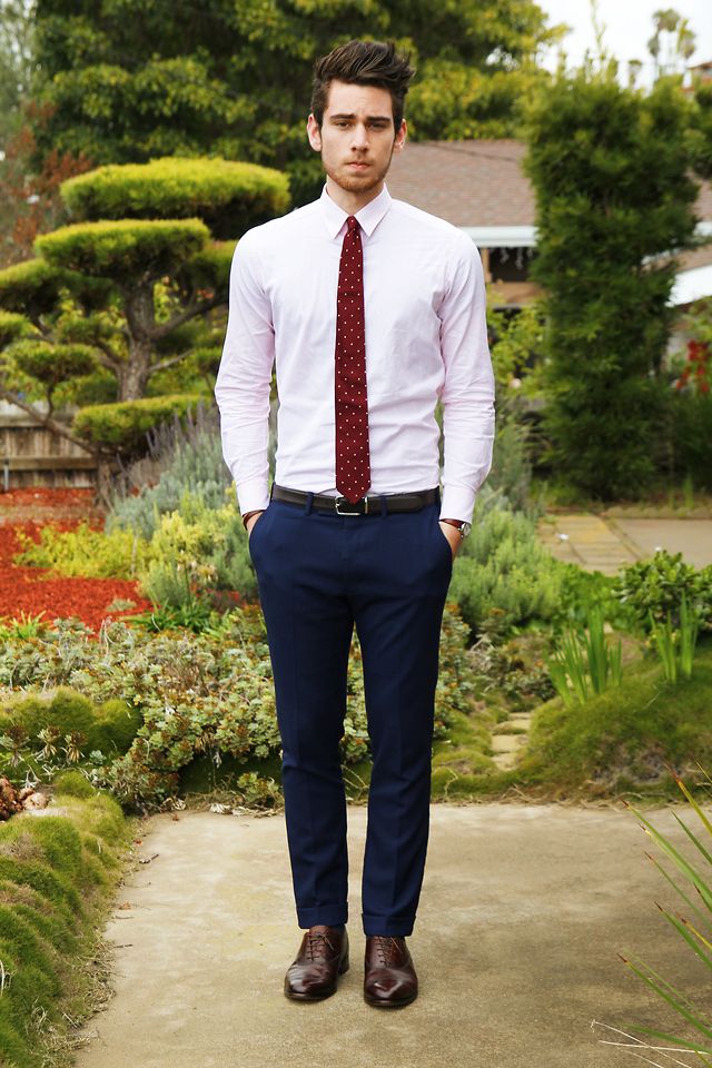 Кожаный галстук черного цвета идеально смотрится со следующим нарядом: белой рубашкой, кожаной курткой, а также классическими брюками и лакированными ботинками на массивной тракторной подошве.