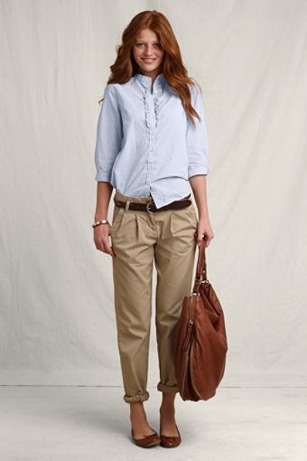 Брюки-чинос нередко заменяют джинсы в женском гардеробе.